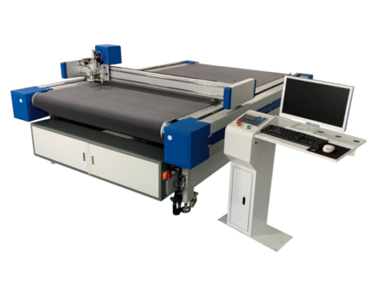 - Configurazione Personalizzata: Oltre alle dimensioni personalizzabili, la macchina offre una configurazione flessibile grazie a una vasta gamma di accessori specifici. Puoi scegliere tra testa oscillante, lama rotante, testa di fresatura (opzionale), pennarello, dispositivo per la scansione (opzionale), e diverse opzioni di supporto rullo (1/3/6 rotoli) o tavolo fisso.
